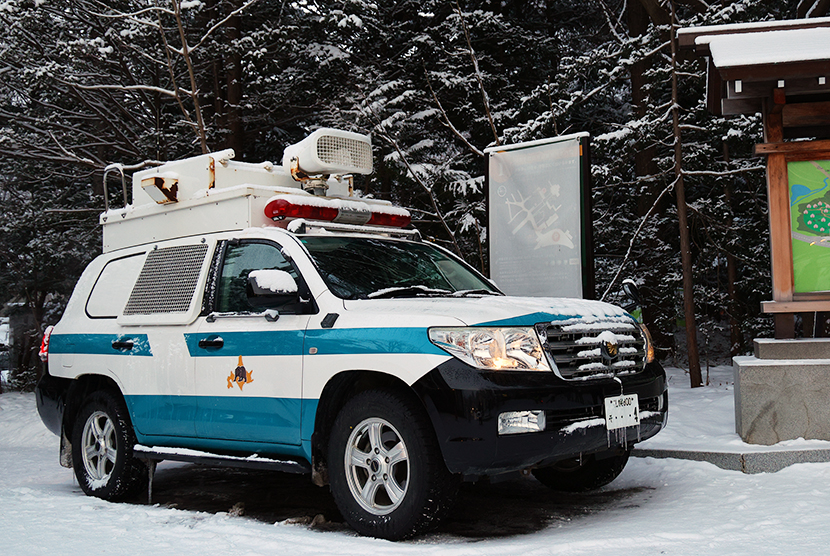 六花亭横に200系ランドクルーザー現場指揮官車。
