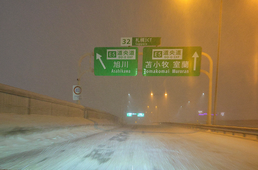 ございます。道央道 札幌南ICでの撮影。雪景色の高速の様子を幾つか