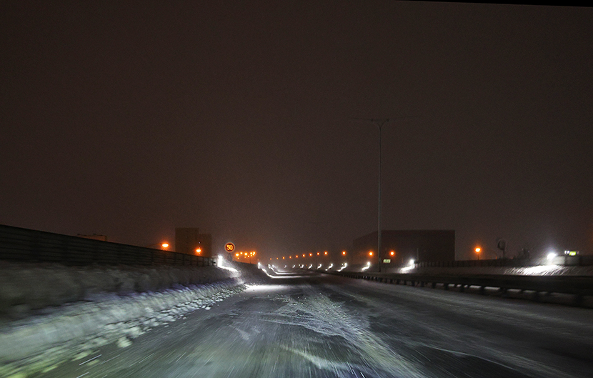 路面はアイスバーン状態。いつにも増して緊張感を強いられる状況。