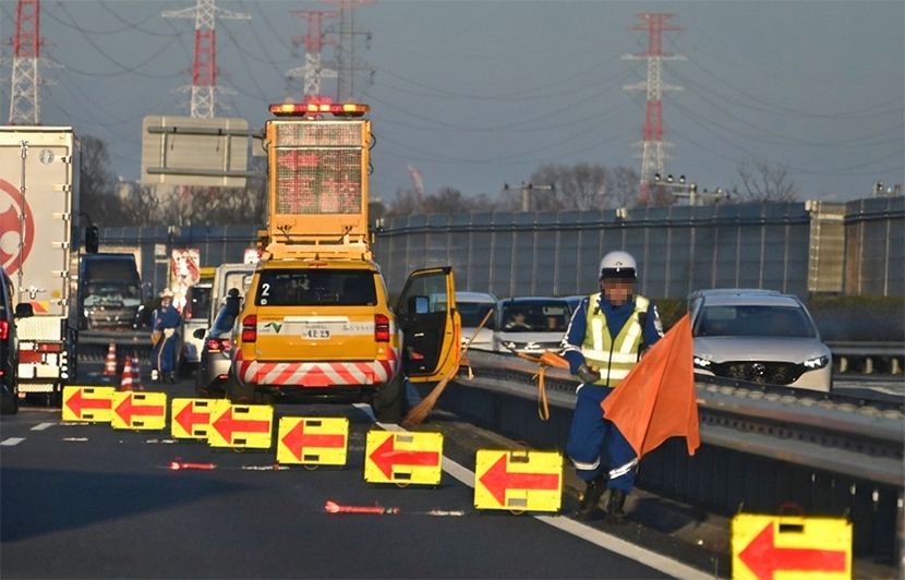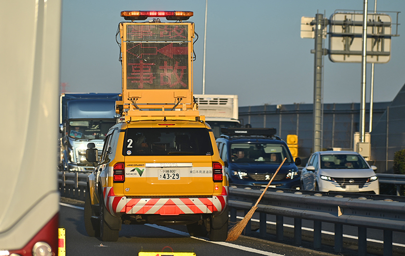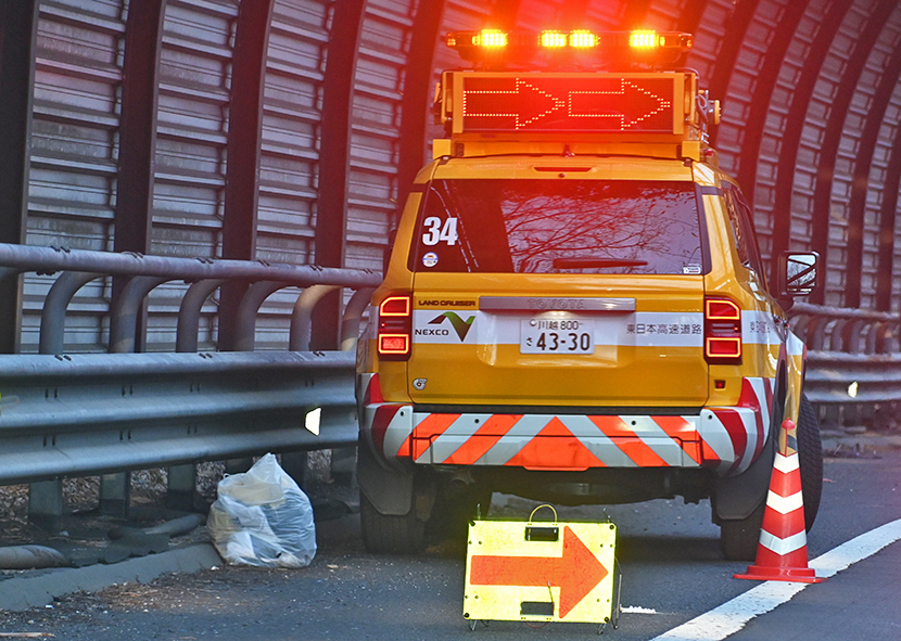 第2車線上が渦中で同車線を規制。ネクスコ東日本所属パトロールカーが
