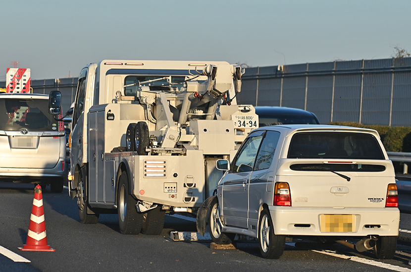 渦中。手前が当事車両。その前は駆け付けたレッカー車両。ビッグワン