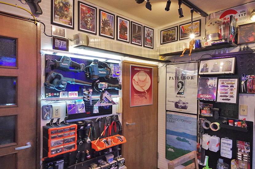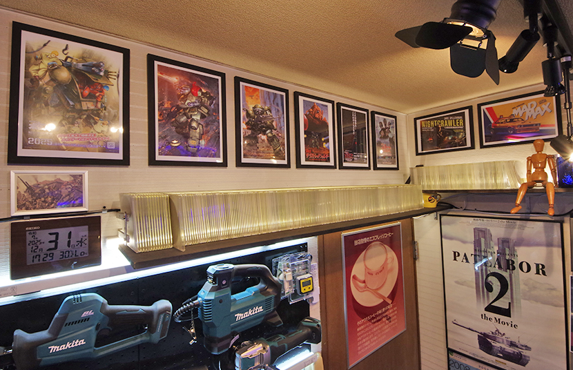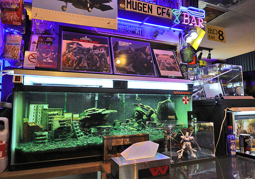水槽天板には映画「ゾンビ」のVHS、「フルメタルジャケット」「機動戦士