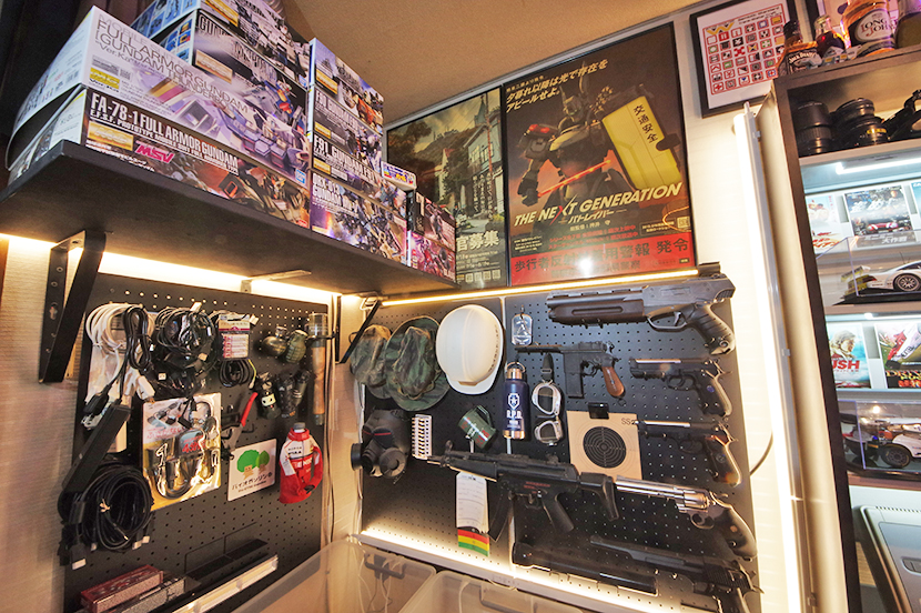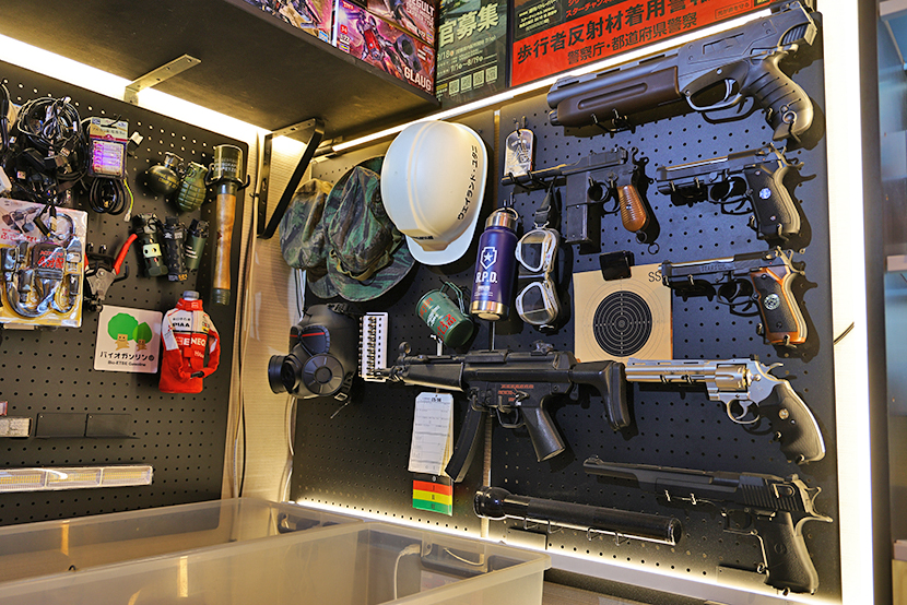 ケーブル類、ガスガン等を飾る。