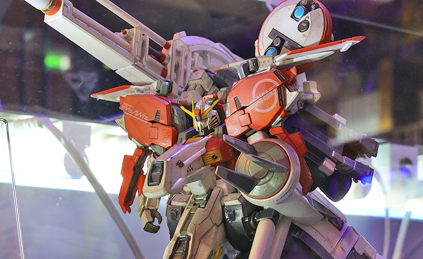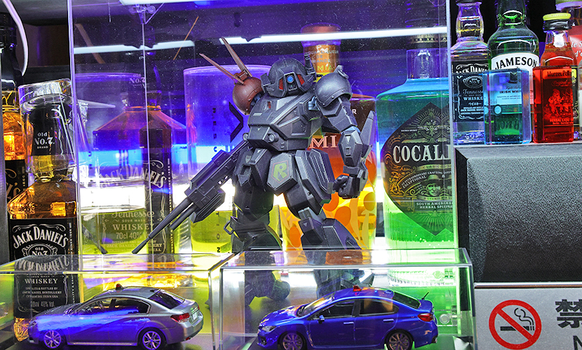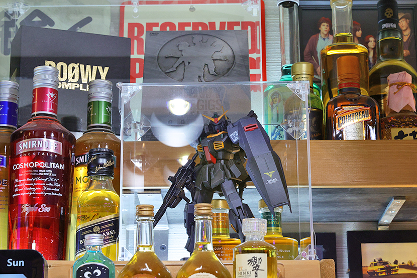 「機動戦士 Zガンダム」に登場のガンダムMK-II。その後ろにはBOOWYの各種BOX。