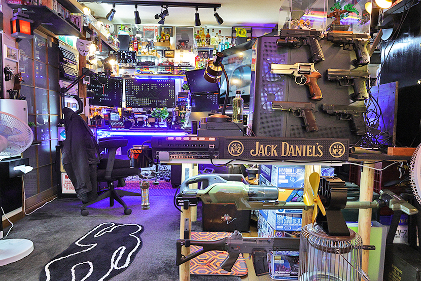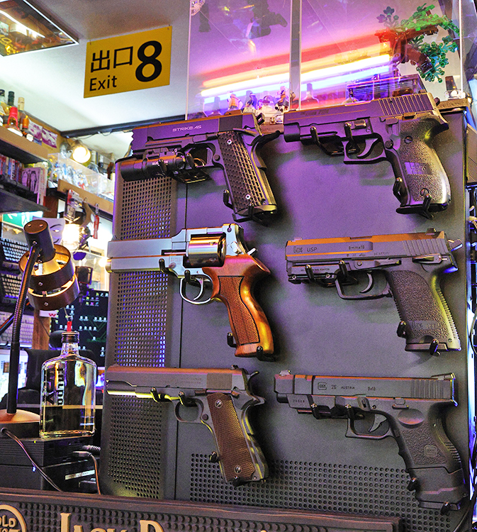 パソコン壁面にもガスガンを展示。