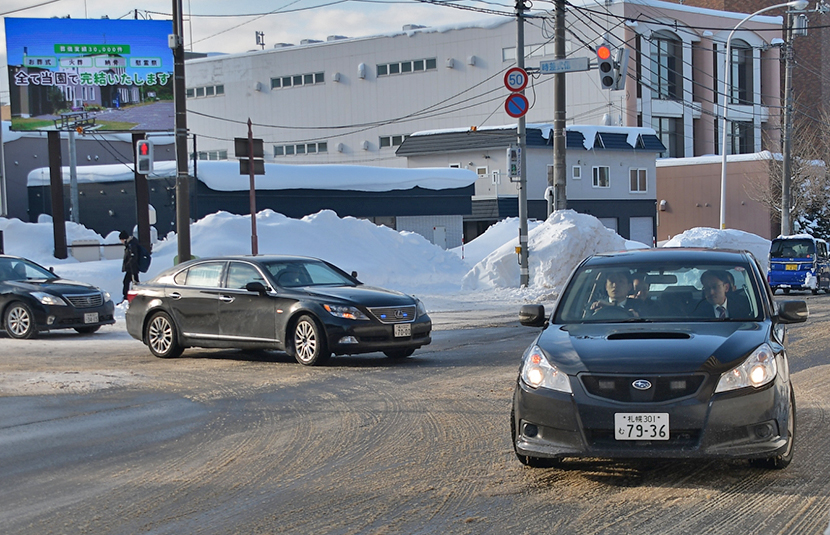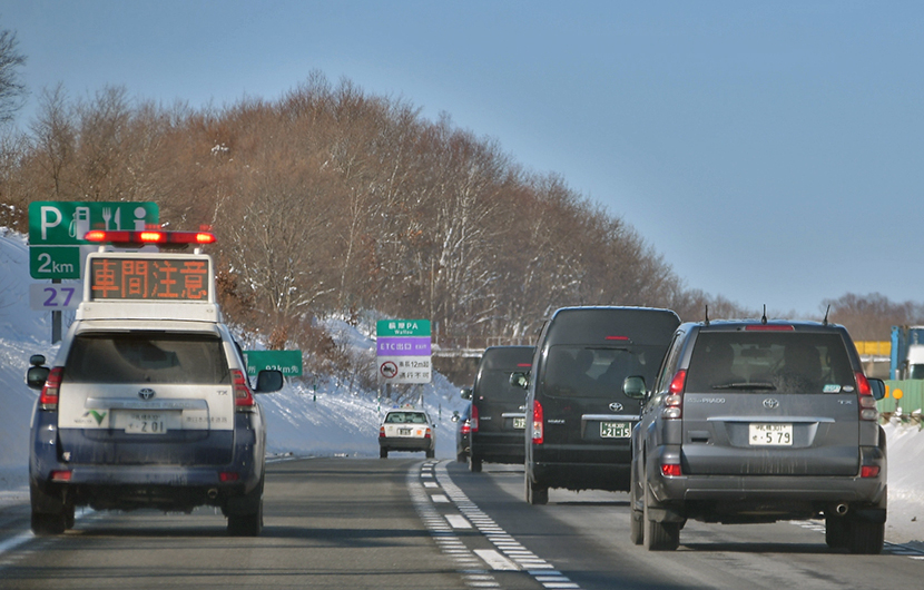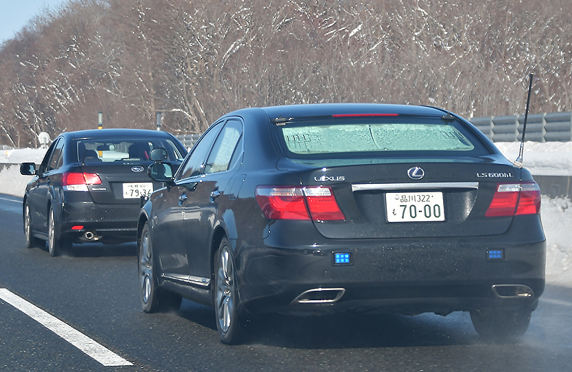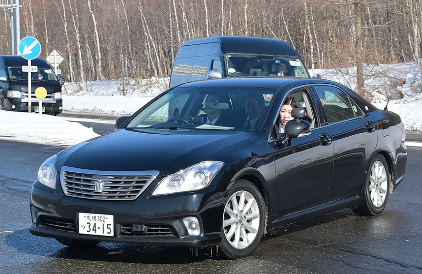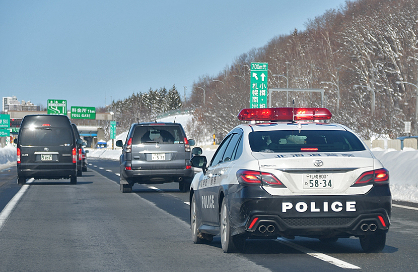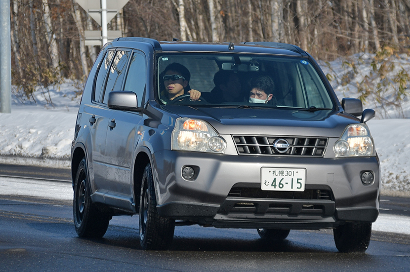旭川から遠路はるばる警護任務に就くJ31ティアナ覆面。走行中に