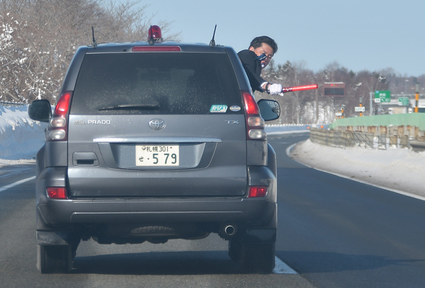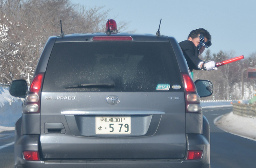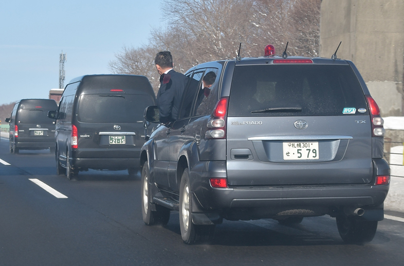 警察車両は全て総理来道にかかる警備車両と見なし、ナンバーに