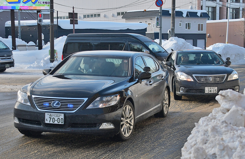札幌自ら隊も周辺警戒にあたる。220系クラウンパンダが行く。
