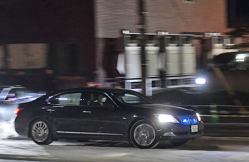 時点では総理は乗車していない。これから安全な隔離エリアで乗車